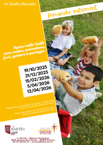Après-midi festif pour les petits et les grands le 1er dimanche des vacances scolaires : animations, contes, jeux et goûter à partager. De 15h à 18h.